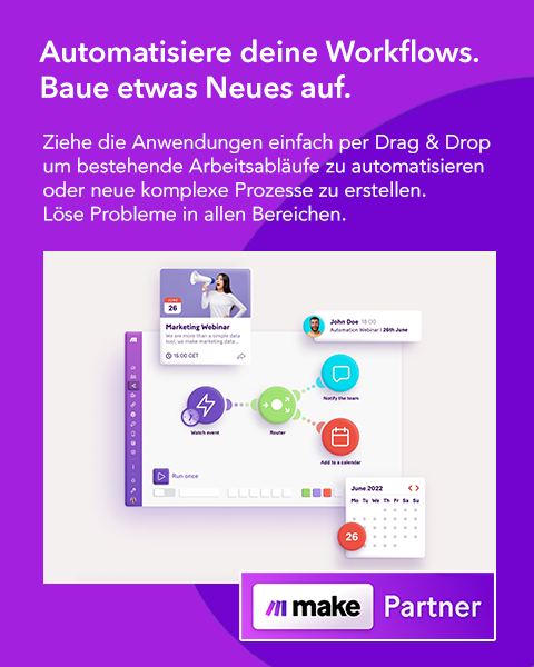 make.com (früher Integromat) ist eine leistungsstarke Automatisierungsplattform, die es Nutzern ermöglicht, verschiedene Anwendungen nahtlos zu integrieren und automatisierte Workflows zu erstellen.